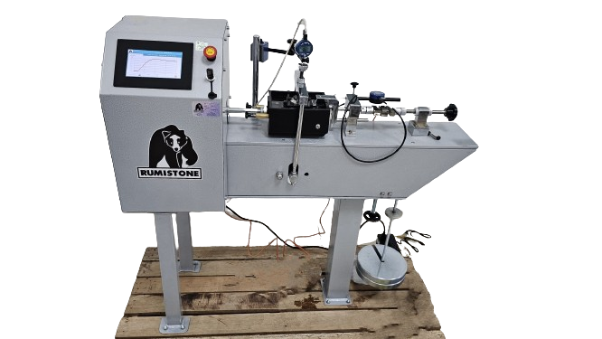 La máquina de corte directo-automática es un nuevo proyecto de la marca RUMISTONE, el equipo trabaja con una celda tipo «S» de 500kgf conectada la pantalla digital para mostrar los valores de carga y cuenta con una entrada USB para guardar los datos, los ensayos de consolidación y desplazamiento por corte directo se miden por medio de relojes comparadores digitales.